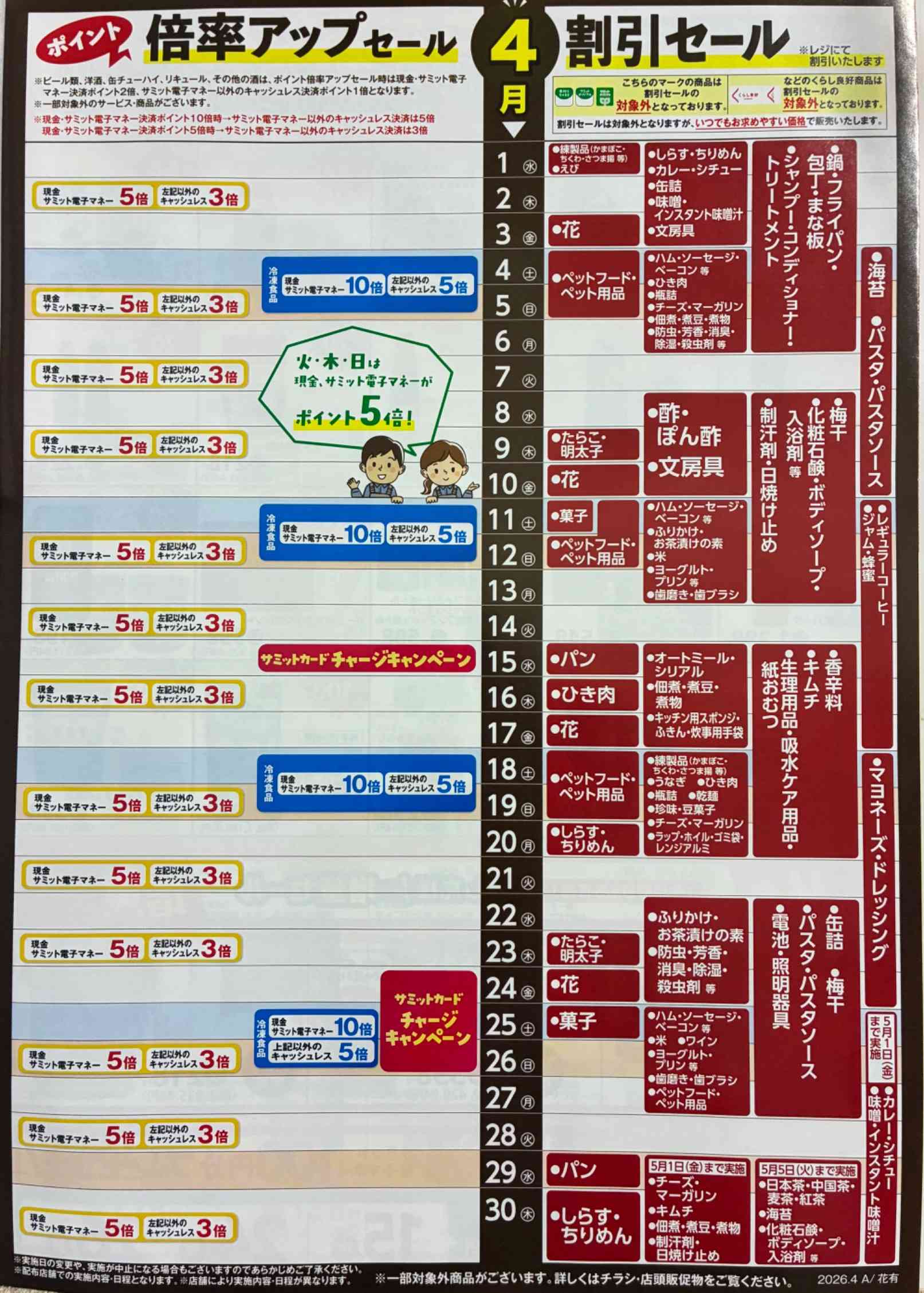 サミットはお客様の暮らしに寄り添うスーパーマーケットとして、生鮮食品、加工食品、店内製造の自慢のお総菜やパンはもちろん、日々のお買物と一緒に買うと便利な生活関連雑貨も取り揃えています。