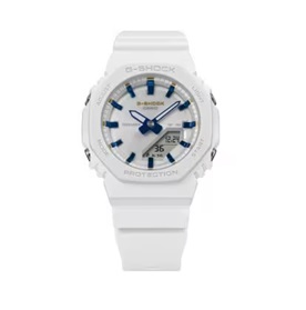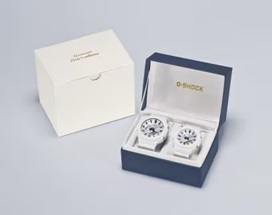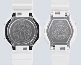 マットホワイトのベゼルとバンドに、G-SHOCKロゴおよびアワーマーカーのゴールドが特別感を添えます。