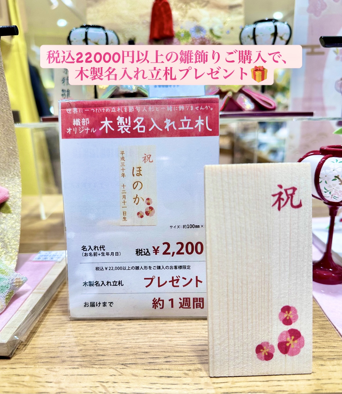織部オリジナルの木製名入れ立札をプレゼント!