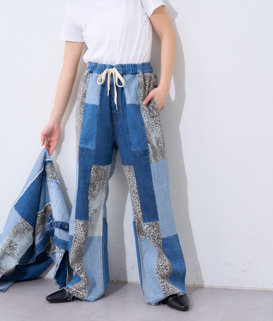 ・デニムパッチワークフレアパンツ