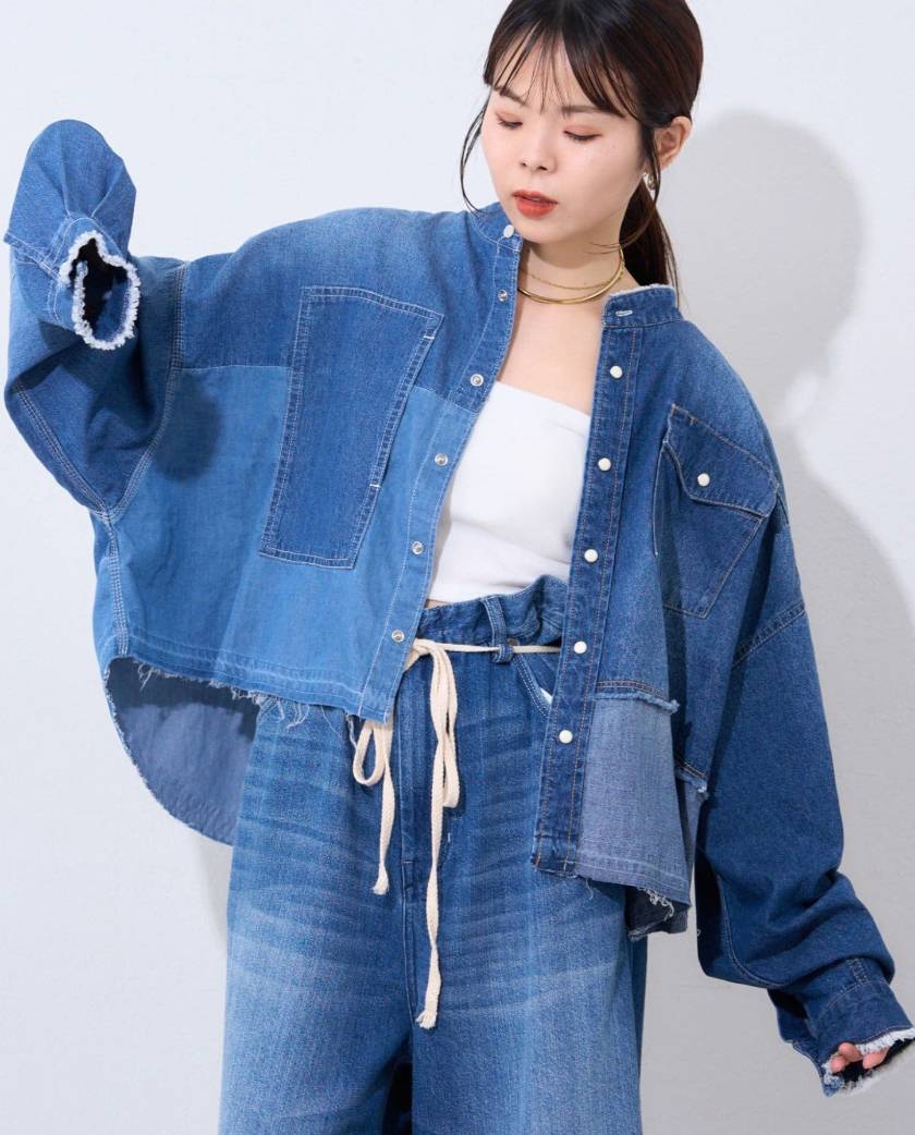 ・デニム切り替えショートジャケット