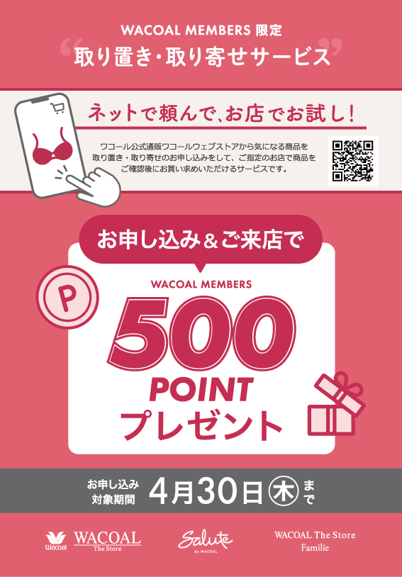 気になる商品がお店に在庫がある場合は「取り置き」、在庫がない場合はワコールウェブストアから「取り寄せ」することができます。