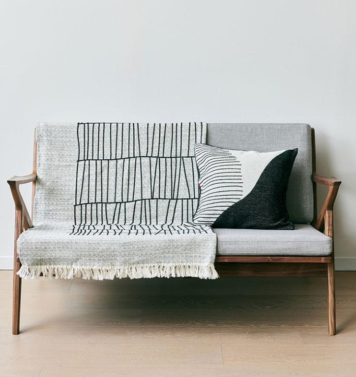 ジャガード織りで表現されたモダンなデザインのブランケット。