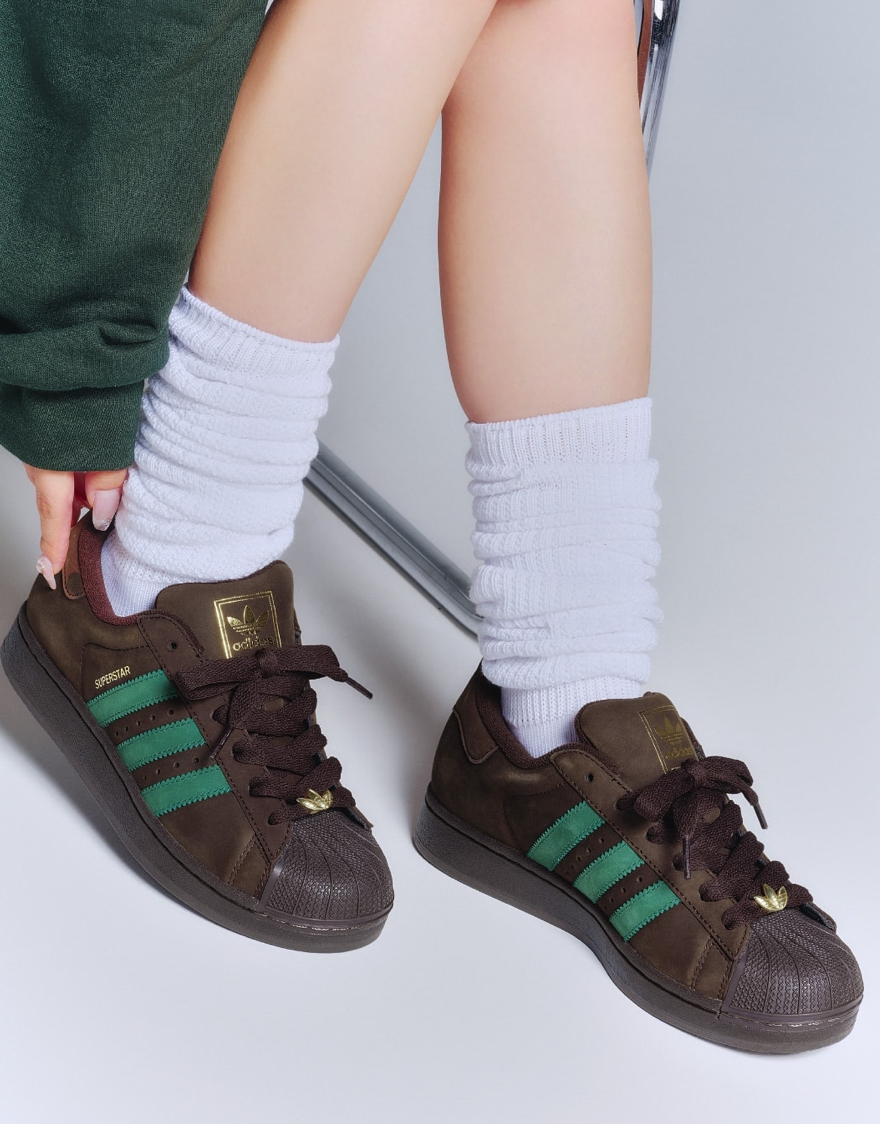 秋らしいブラウンxグリーンのヌバック素材のSUPERSTAR Iは、