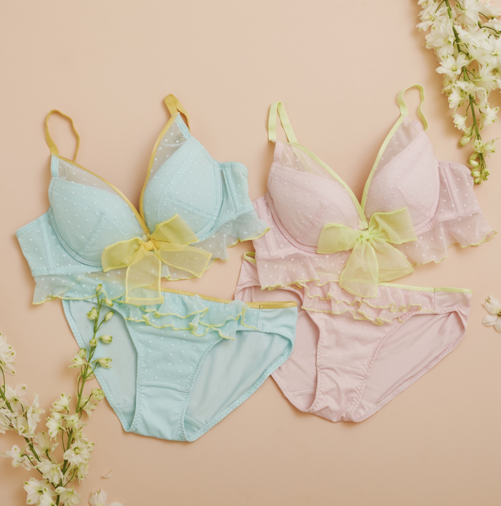 2点目はとってもかわいいブラジャー&ショーツの上下セットが、なんと今なら!税込1.485円~(E・Fサイズは税込1.650円)からお求めいただけます!!