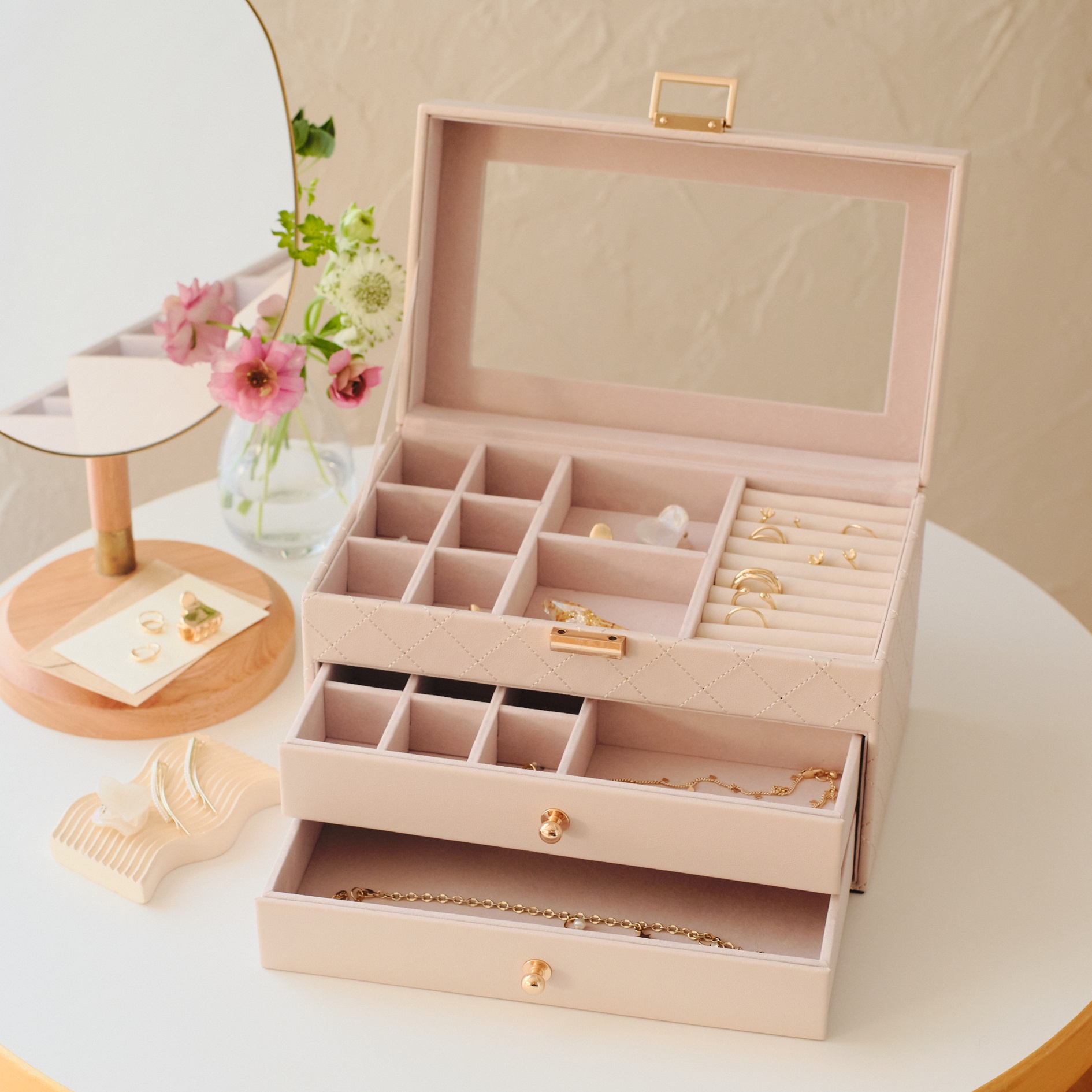 お気に入りジュエリーケースで、お出かけ前の気分ももっと晴れやかに。